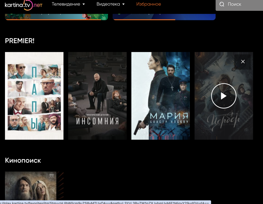 Полагаю что раньше строка с фильмами из СТАРТа в разделе была.. (строки с добавленными фильмами из ПРЕМЬЕР , ИВИ, КИНОПОИСК в ИЗБРАННОМ есть)
